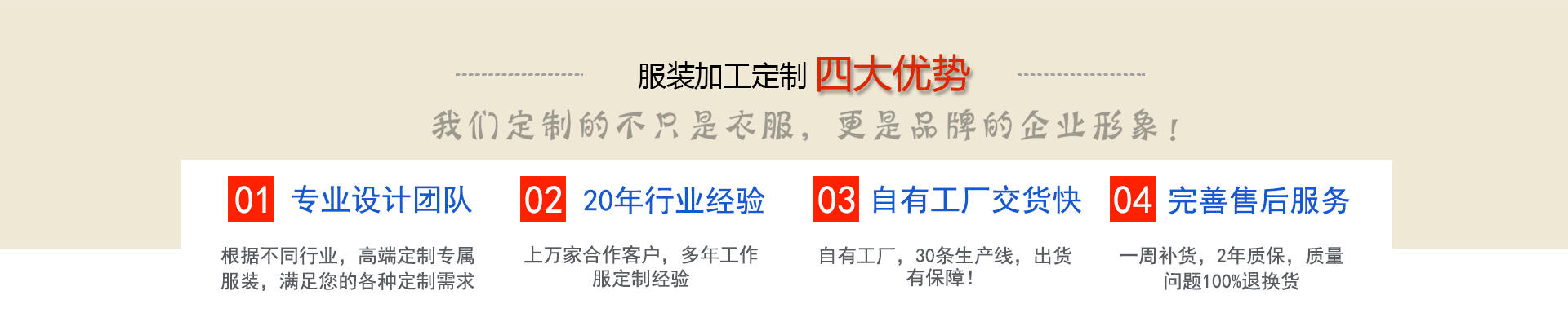 服裝加工網(wǎng)是一家及設(shè)計、生產(chǎn)、銷售為一體的專業(yè)服裝生產(chǎn)型企業(yè), 根據(jù)客戶需求定制西服襯衫工作服大衣棉服等產(chǎn)品,近二十年工作服職業(yè)裝定做經(jīng)驗積累, 工期短交貨及時,免費提供團體定制上門量體服務,送貨上門,免費修改,完善的售后服務, 滿足您的各種定制需求!